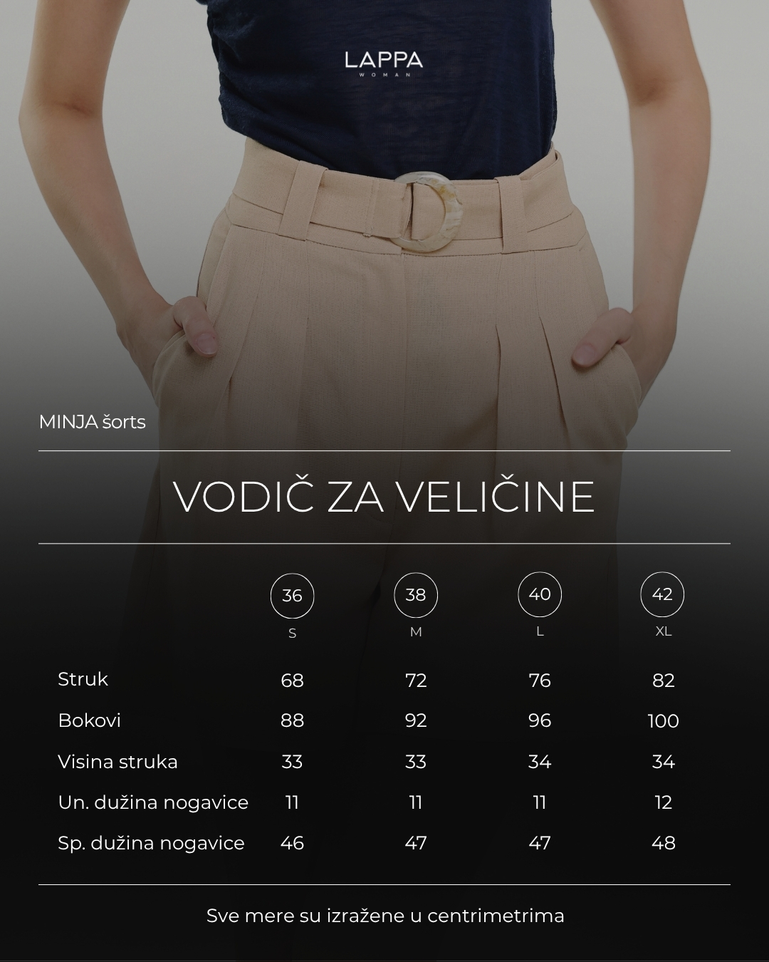 - model na fotografijama je visine 175 cm i nosi šorts veličine 38 (M)