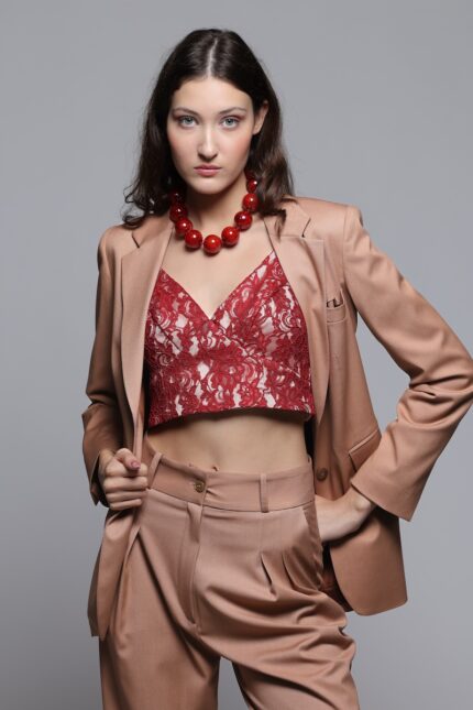 Strukirani sako u toploj kamel boji – pouzdan komad za sve prilike, od formalnih do svakodnevnih. Možeš ga kombinovati uz naše REBECCA ili SONJA pantalone, za kompletan izgled i diskretnu eleganciju u jednom ton-tonu setu.